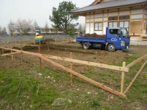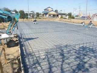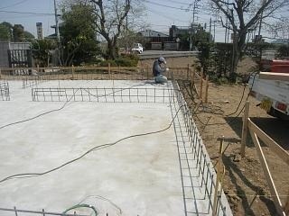 雨の合間を縫って、基礎のコンクリート打ちです。
